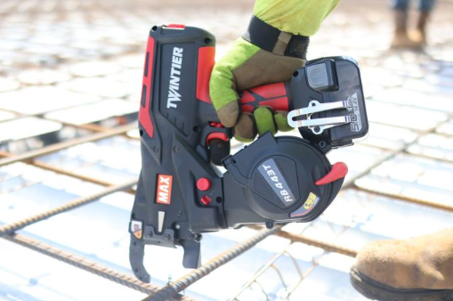 The MAX TWINTIER RB443T is a high-speed, cordless rebar tying tool designed to maximize efficiency and reduce labor costs. With its advanced TWINTIER technology, this tool can complete up to 5,000 ties per charge, making it one of the fastest rebar tying solutions available. It handles wire mesh x wire mesh applications and rebar combinations up to #7 on #7 with ease, significantly cutting down tying time compared to traditional hand-tying methods.